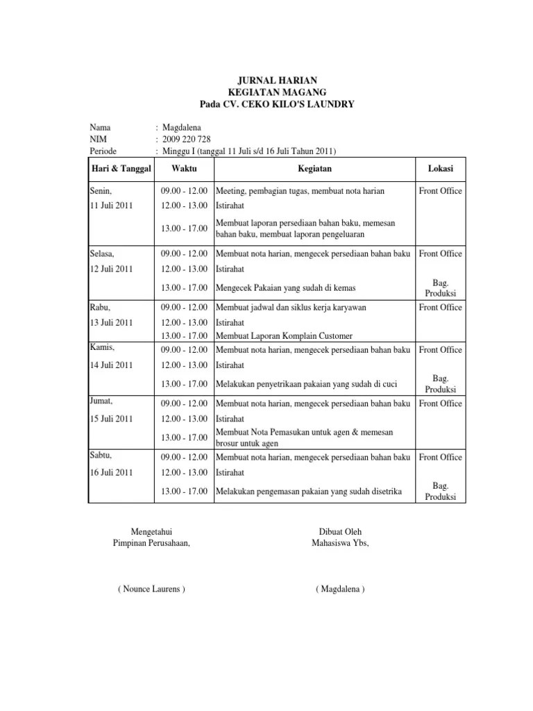 Contoh Laporan Kegiatan Magang Di Perusahaan : Contoh Laporan Magang Di Perusahaan Surasm : Bab ini berisikan laporan dari hasil kegiatan yang dilaksanakan selama magang yaitu.. Penilaian prestasi magang oleh perusahaan tempat magang, laporan yang disusun . Terhubung ke whatsapp para online marketer dan mengirim format text "halo. Ada fasilitas wifi kusus untuk pegawai di sana, tetapi . Tujuan, karakteristik & lingkup kegiatan program magang. 2 minggu dari selesainya kegiatan magang dan.